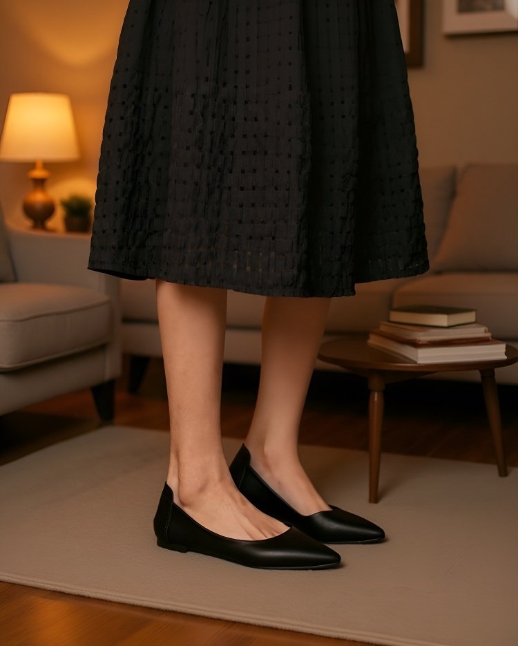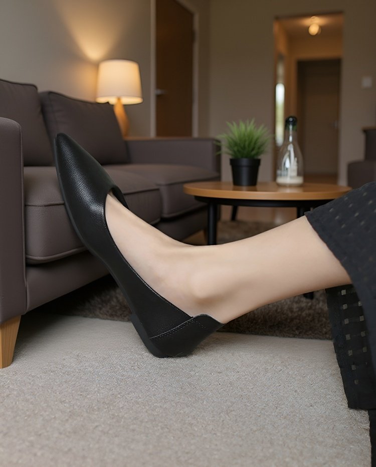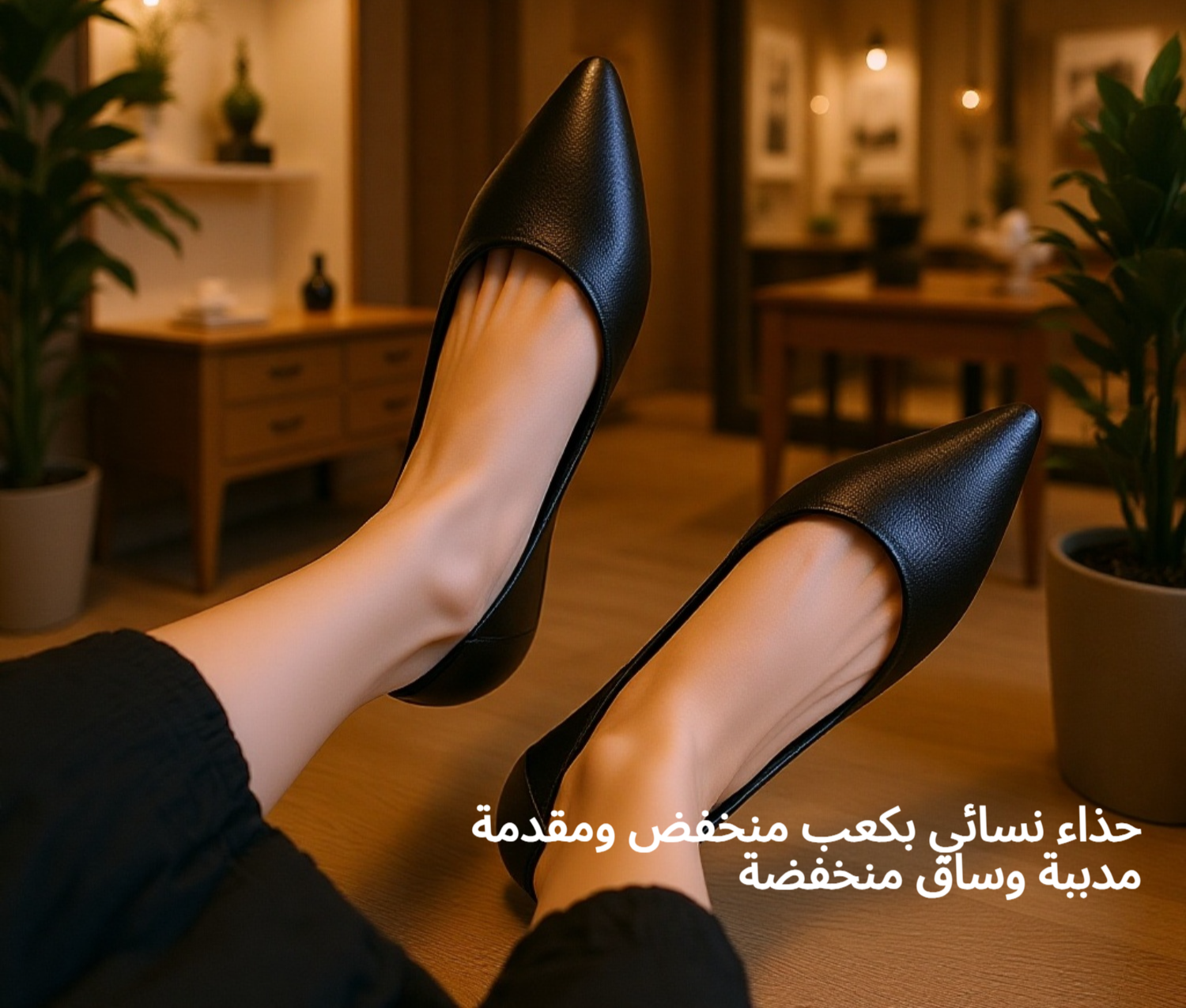 حذاء نسائي بكعب منخفض ومقدمة مدببة وساق منخفضة