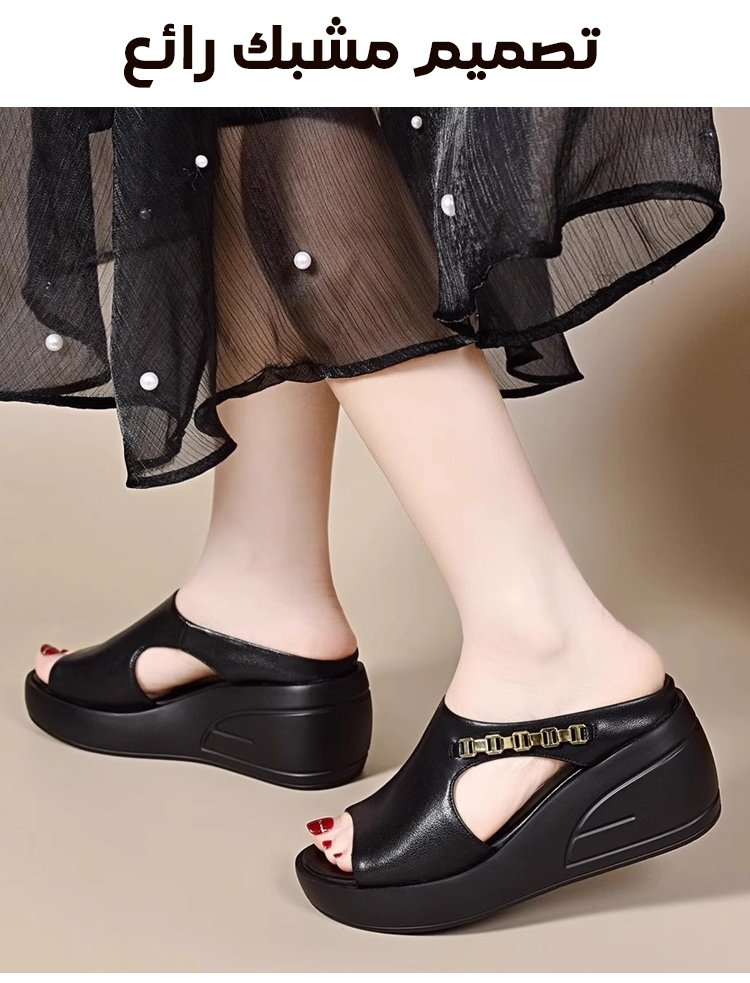 صندل طبي مريح مصنوع من الجلد الطبيعي الأصلي | ارتفاع الكعب 8 سم يخفف آلام القدم | تصميم فاخر ?