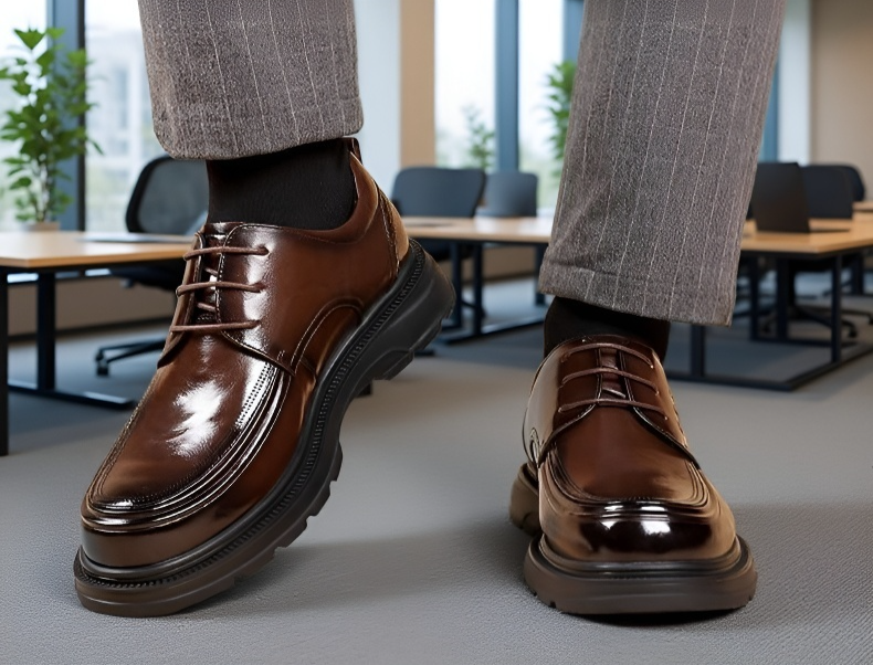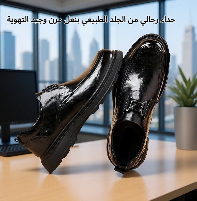 حذاء رجالي من الجلد الطبيعي بنعل مرن وجيد التهوية